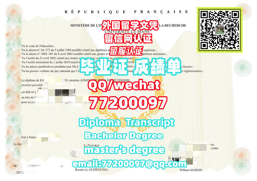 92.长期办理【法国】du Mans文凭证书,Q微77200097勒芒大学#毕业证成绩单、 du Mans Diploma Degree/du Mans文凭证书Université du Mans Undergraduate Diploma Degree Transcript